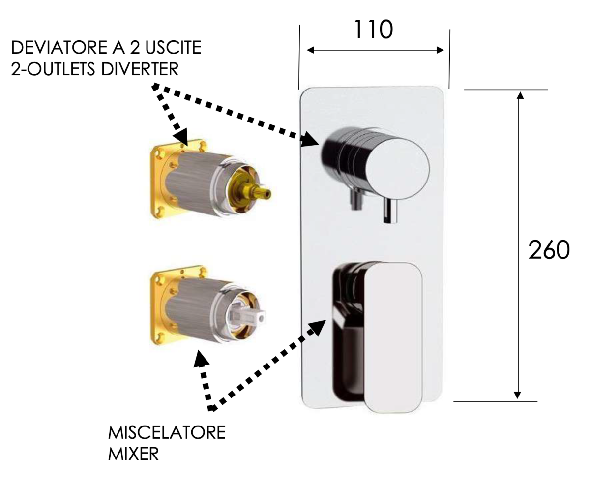 —Смеситель для душа Daniel Tiara TA612D2KBDP встраиваемый в стену золото