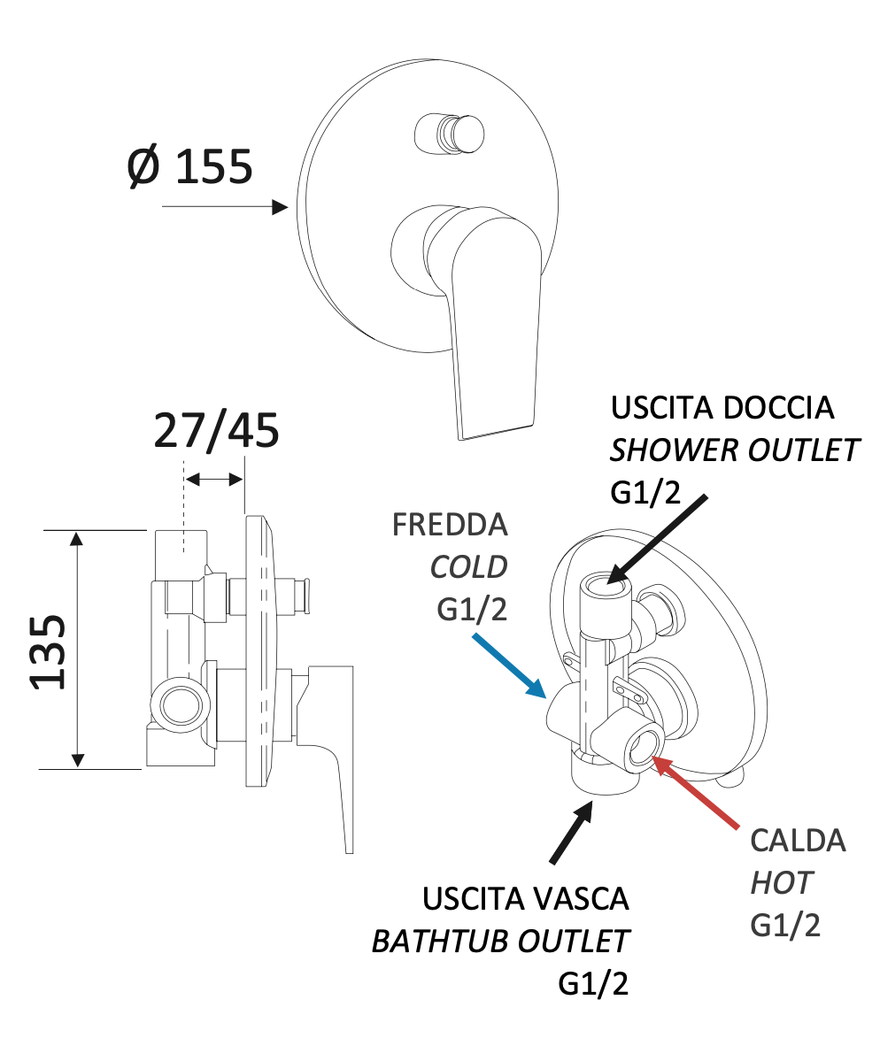 —Смеситель для душа Mariani Artic В14173AT встраиваемый в стену черный