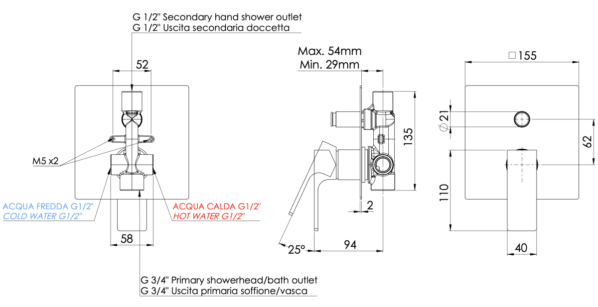 —Смеситель для душа Mariani Rebel B37173RE встраиваемый в стену белый