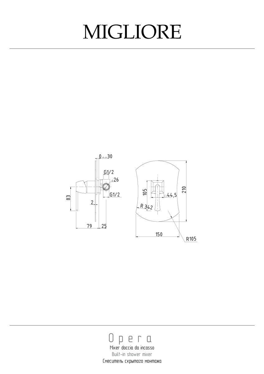 —Смеситель для душа Migliore OPERA 19057 встраиваемый в стену золото