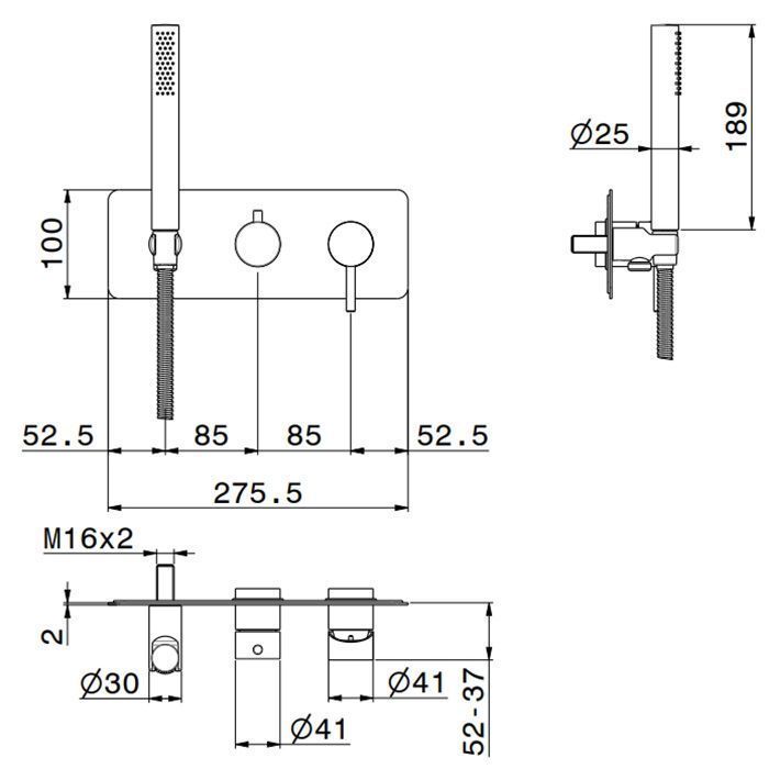 —Смеситель для душа Newform Gessi316 69679EX.59.064 встраиваемый в стену оружейная сталь