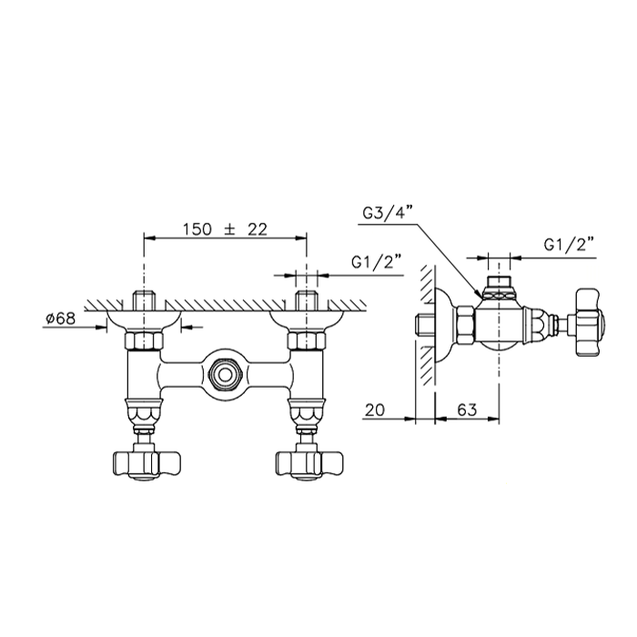 —Смеситель для душа Nicolazzi Dames Anglaises 1425CR18 настенный хром