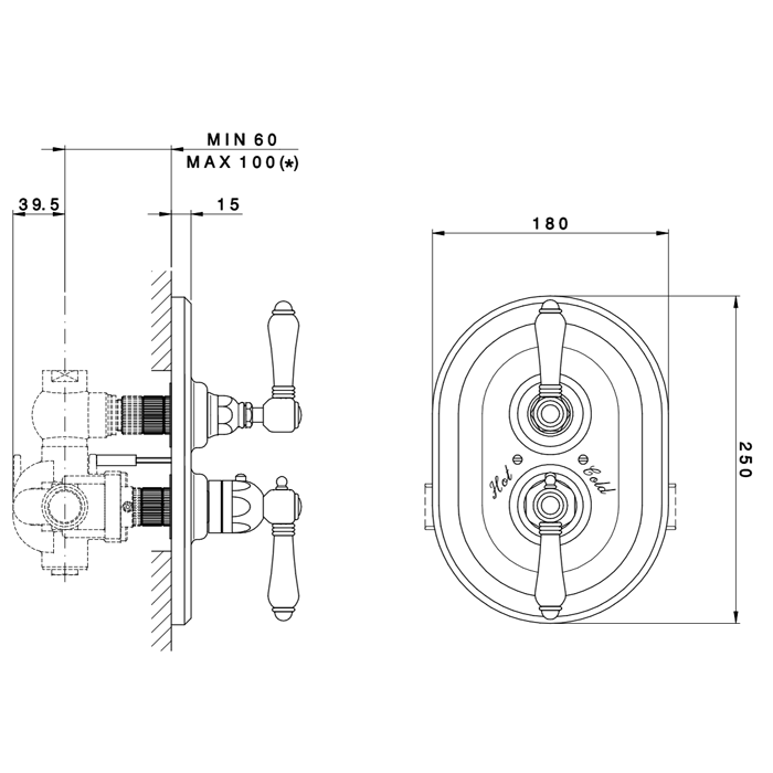 —Смеситель для душа Nicolazzi Termostatico 4909CR69 встраиваемый в стену хром (внешняя часть) с термостатом