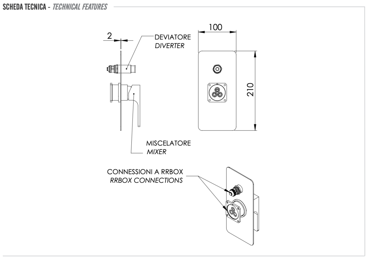 —Смеситель для душа Remer Absolute AU09KBXV встраиваемый в стену нержавеющая сталь