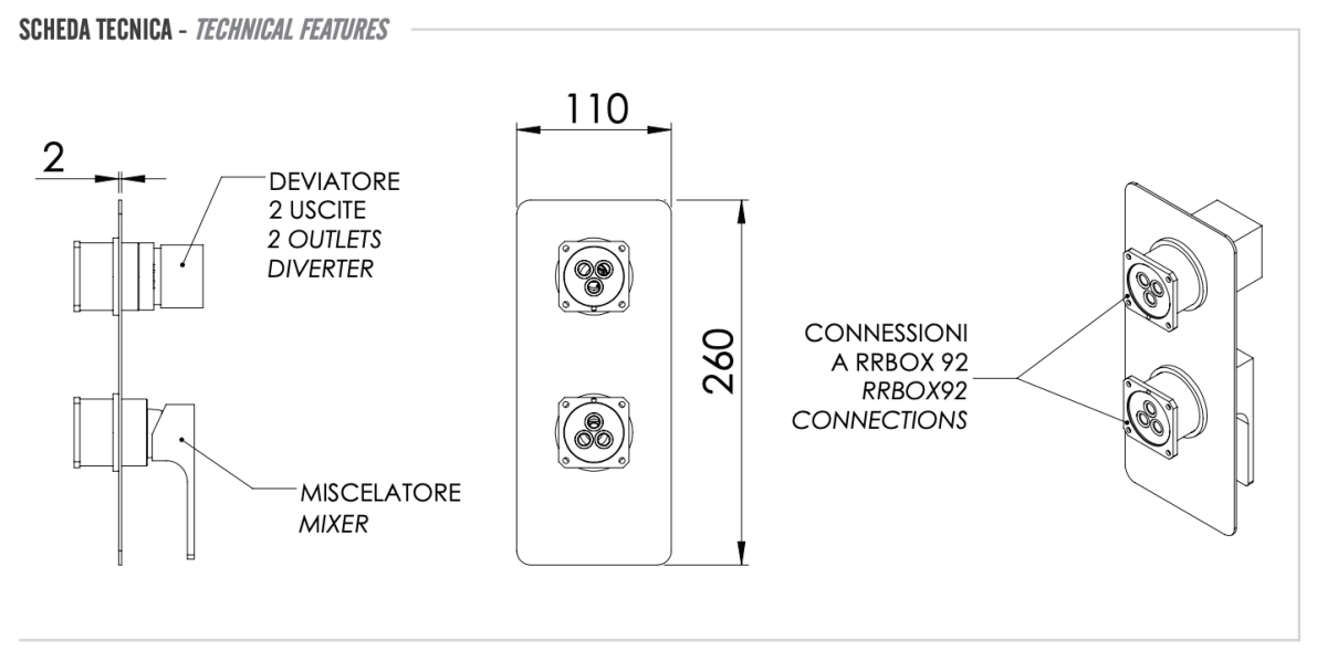 —Смеситель для душа Remer Absolute AU92KBBG встраиваемый в стену золото