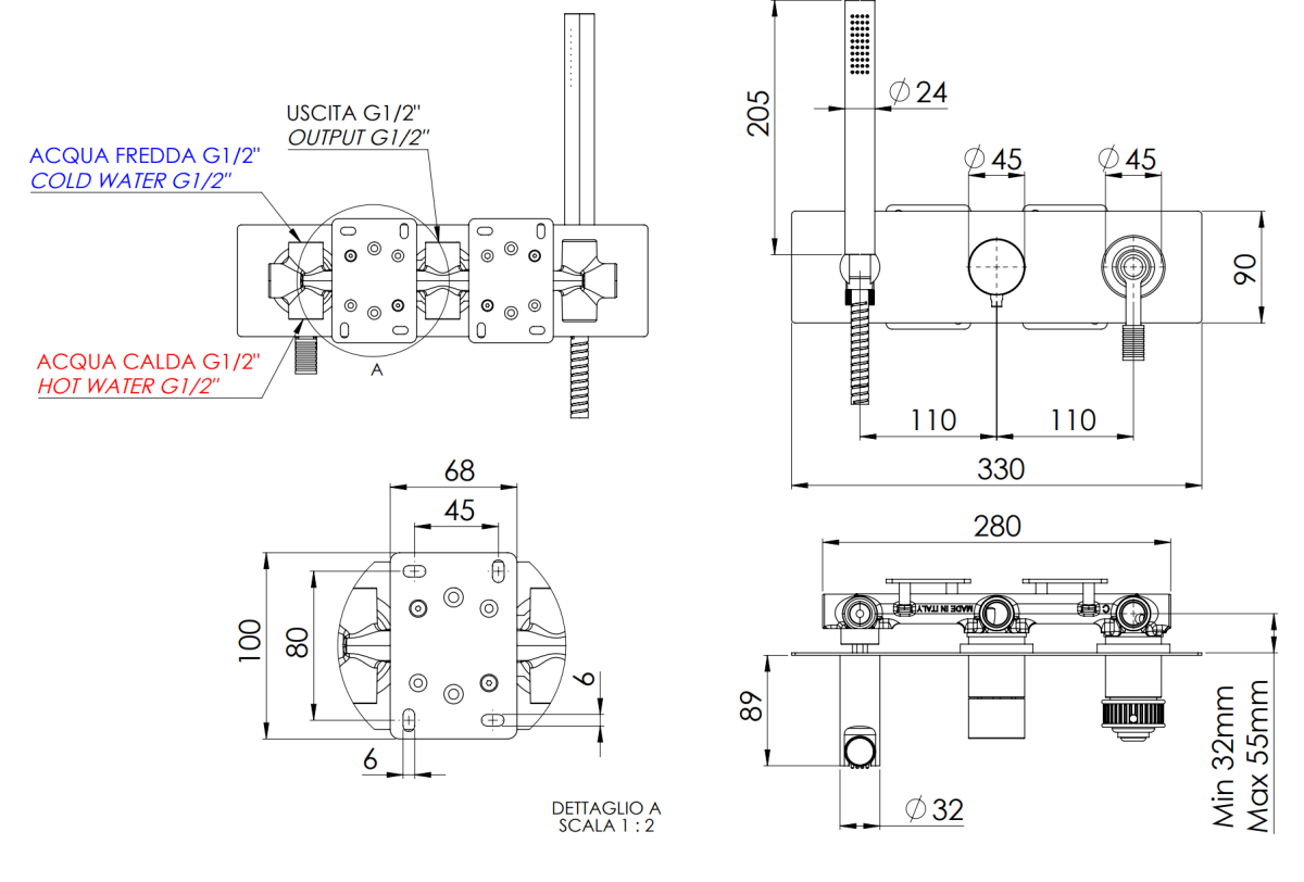 —Смеситель для душа Remer Atelier AL97D3BG встраиваемый в стену золото