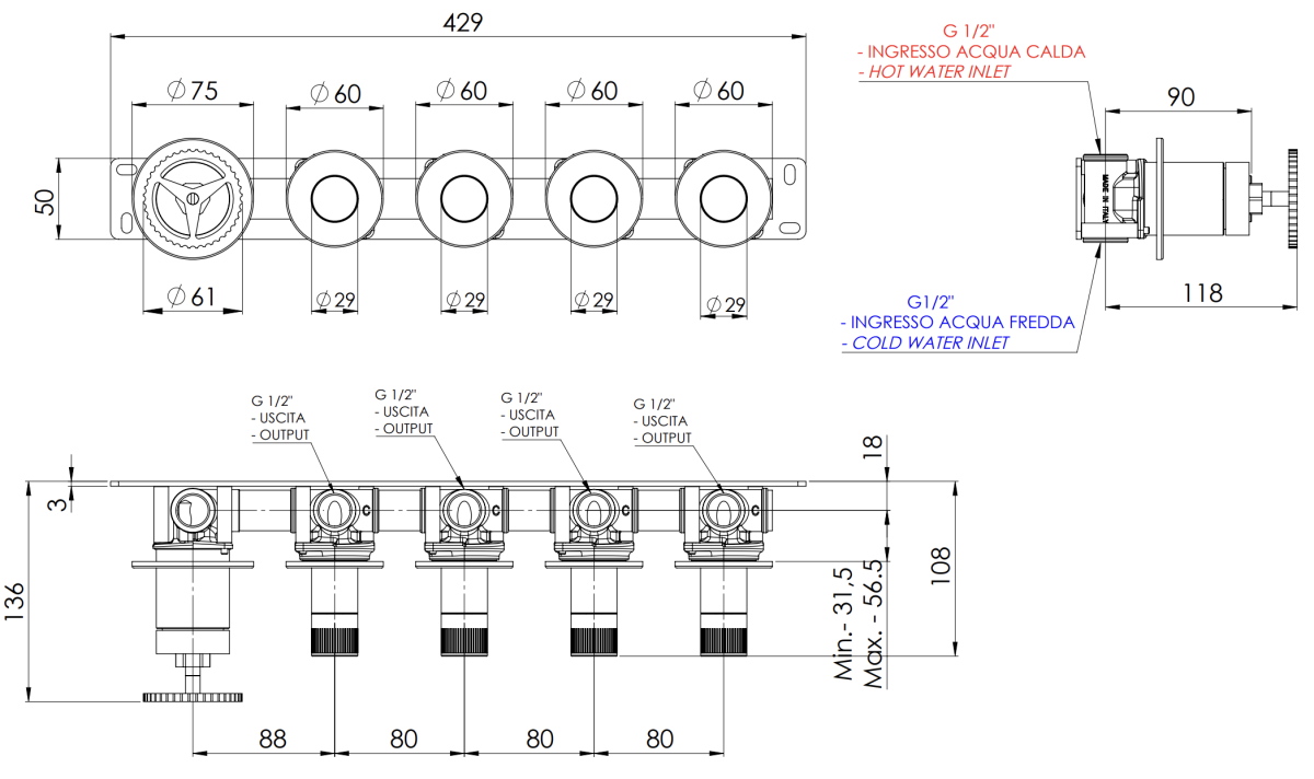 —Смеситель для душа Remer Chrono CH98D4PCFP встраиваемый в стену черный