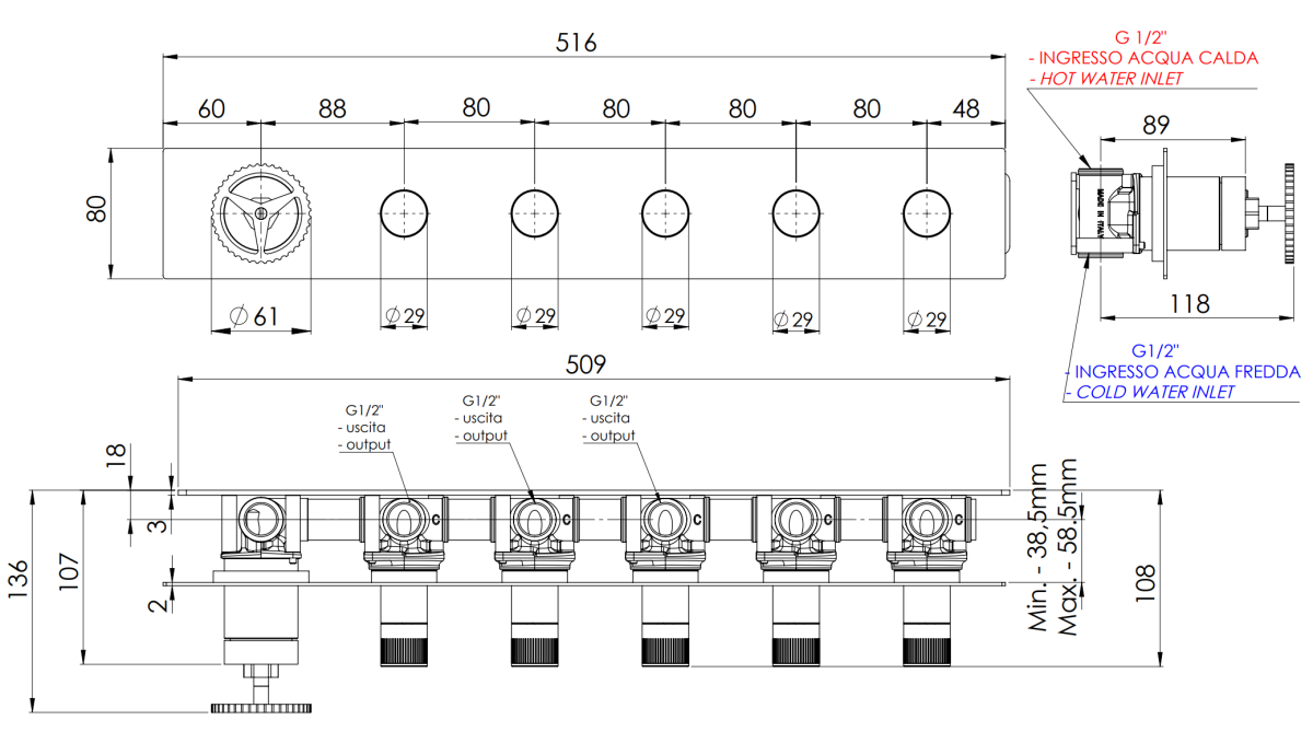—Смеситель для душа Remer Chrono CH98D5BG встраиваемый в стену золото