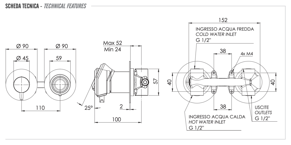—Смеситель для душа Remer Element ET92ZPNO встраиваемый в стену черный