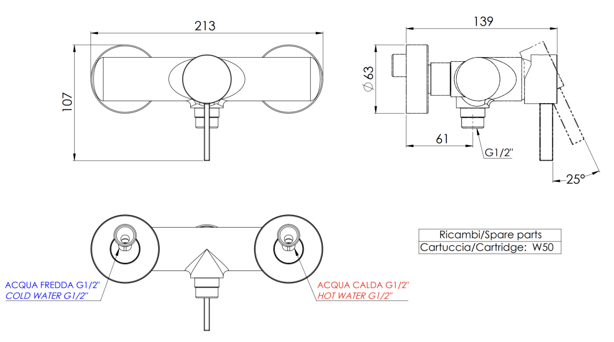 —Смеситель для душа Remer Metrica MC33 настенный хром