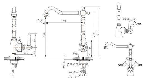 —Смеситель для кухни Bravat ART F775109U на столешницу бронза