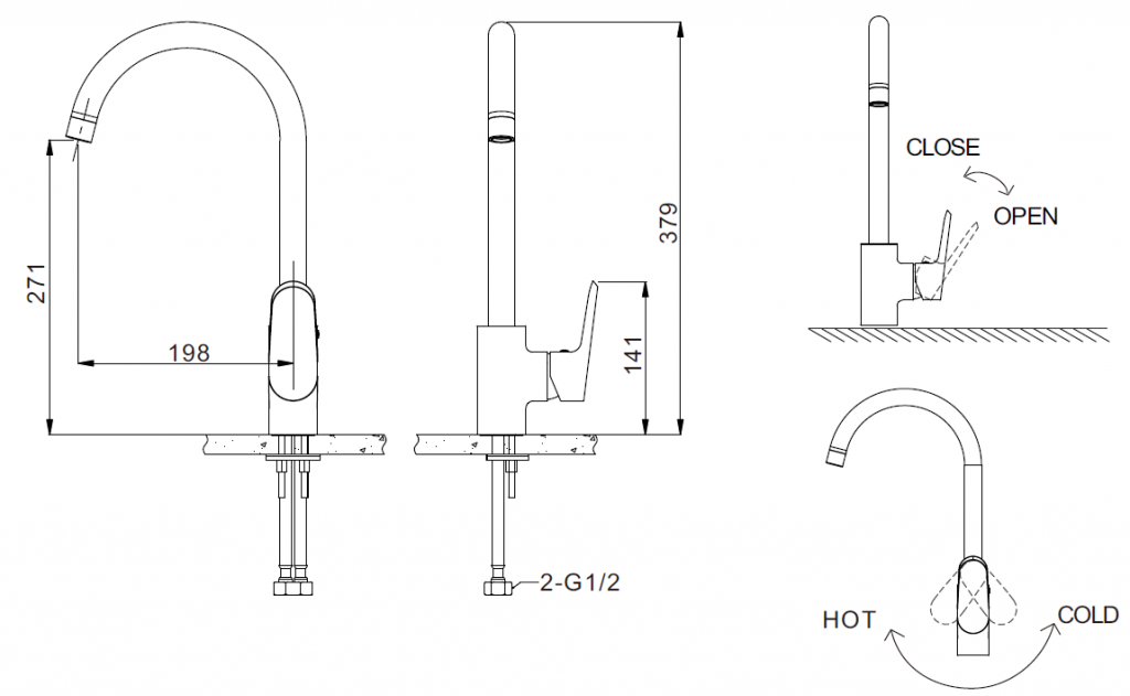 —Смеситель для кухни Bravat Pure F7105161C на столешницу хром