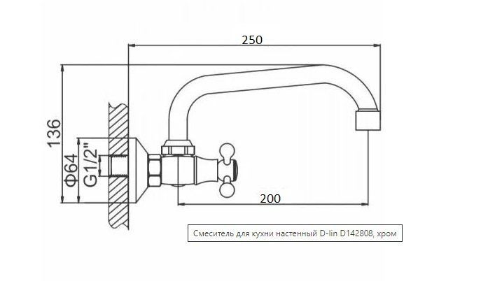—Смеситель для кухни D-Lin D142819 настенный хром