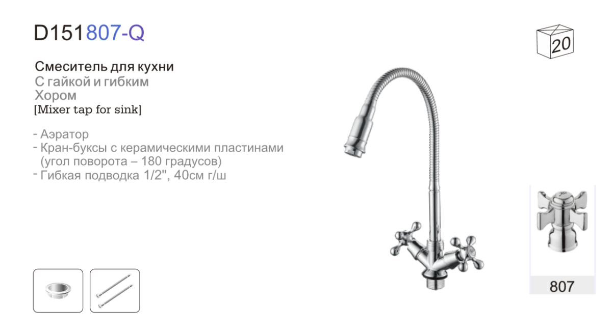 —Смеситель для кухни D-Lin D151807-Q на мойку хром