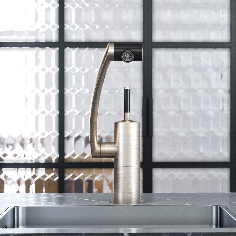 Вращение излива вокруг своей оси в совокупности с подвижным аэратором и регулировкой высоты — это дает смесителю Arc право называться самым функциональным смесителем своего класса — ведь вы с легкостью можете направить поток воды в любое место раковины а также даже помыть столешницу и место за мойкой.