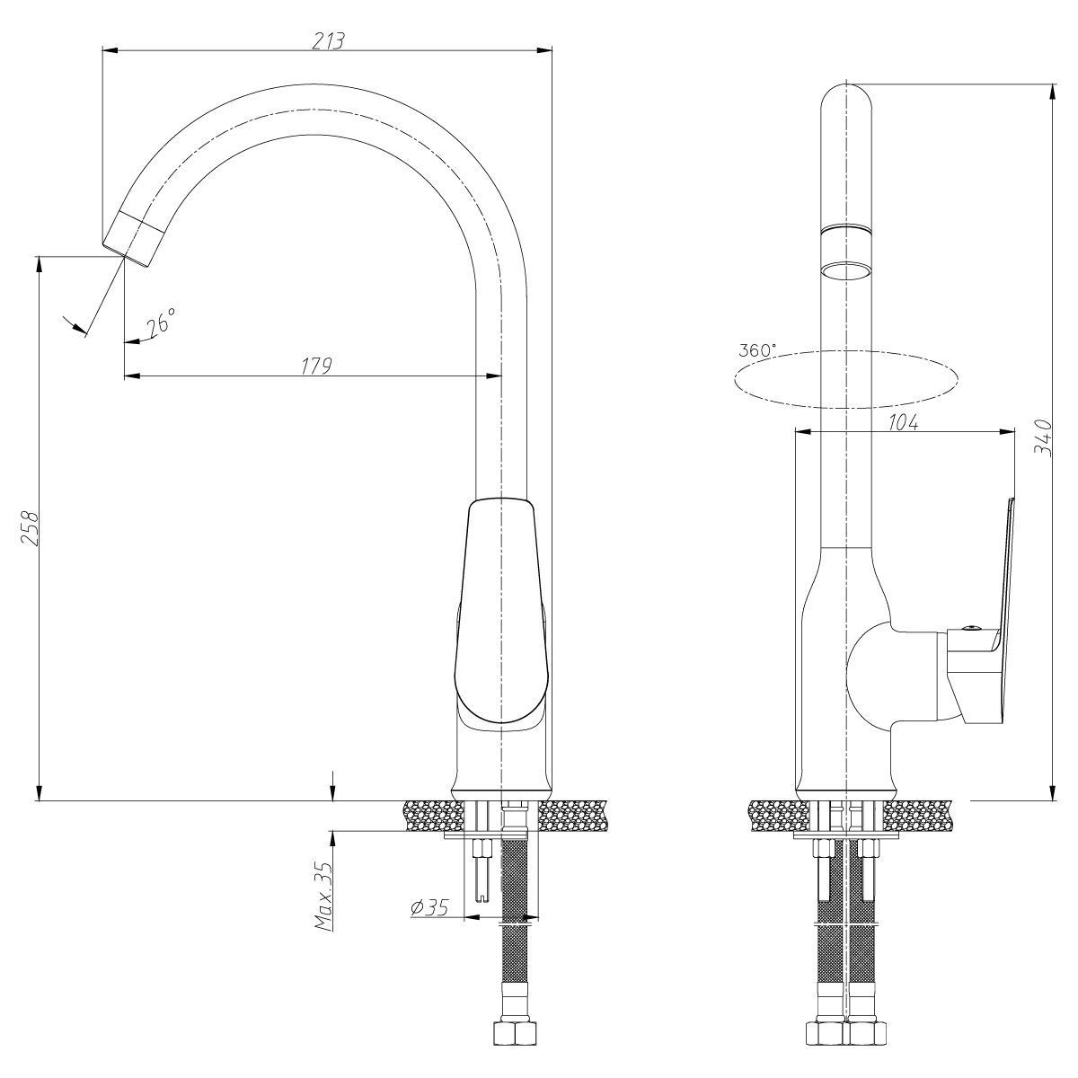 В комплекте:Пластиковый аэратор с функцией легкой очистки. Керамический картридж 35 мм. Гибкая подводка 30 см – 2 шт.. Присоединительная группа для горизонтального крепления. Металлическая рукоятка