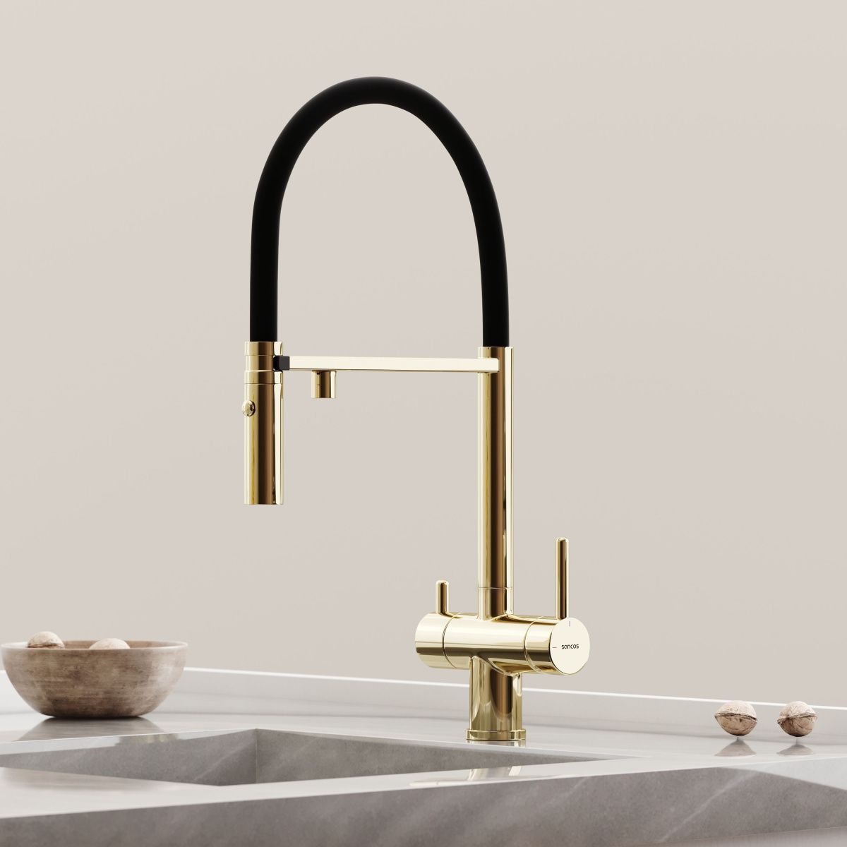 —Смеситель для кухни Sancos Imola SC4010ZG на мойку черный/золото