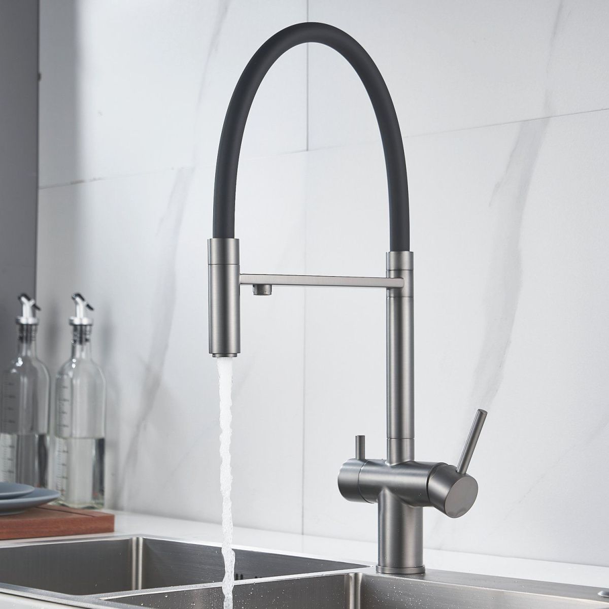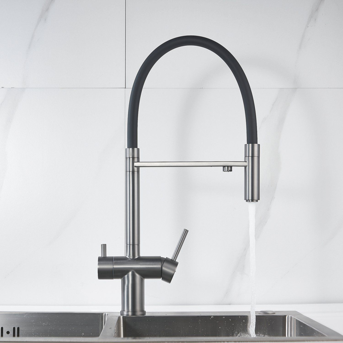 —Смеситель для кухни Shevanik S178T на мойку оружейная сталь