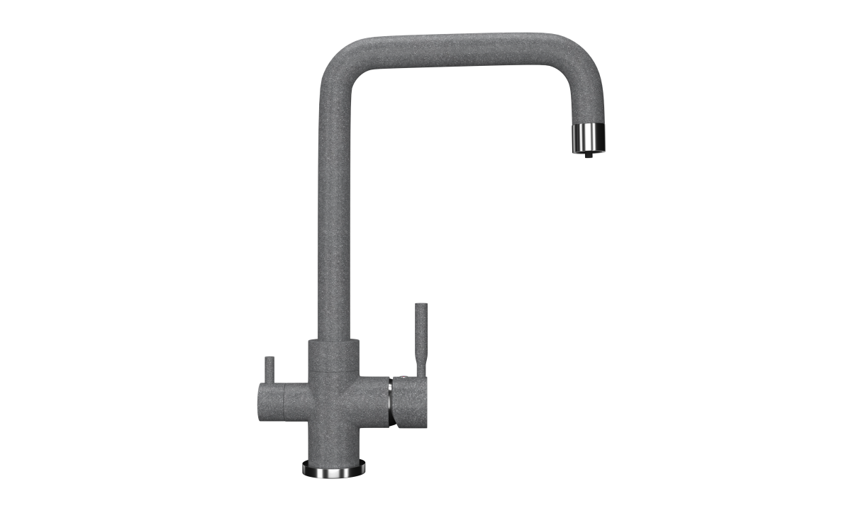ULGRAN U-019 - современный кухонный смеситель с дополнительным краном для подключения фильтрованной воды, оснащенный кран-буксой с керамическими пластинами. Реализован тройной подвод воды через один излив: холодная, горячая и фильтрованная. Переход с одного подвода на другой производится поворотом рычага. Набор для соединения с фильтром входит в комплект . Система фильтрации приобретается дополнительно и монтируется под мойку, специальный индикатор сообщает о необходимости замены картриджа. Материал корпуса выполнен из высококачественной латуни, а окрашивание под "искусственный камень" в цвет мойки ULGRAN выполняется на собственном производстве, что позволяет идеально попасть в фирменный цвет ULGRAN. В качестве керамического картриджа используется известный бренд Wanhai диаметром 35 мм с высокой пропускной способностью в 500 тысяч циклов "открывания-закрывания".  На подвижные части картриджа  Wanhai  нанесена специальная невымываемая силиконовая смазка, а керамические пластины изготовлены из 96% оксида алюминия, что, в сочетании с высоким качеством шлифовки обеспечивает долговечность, надежность, плавность хода рукоятки.  Смеситель оборудован съемным пластиковым аэратором для экономии воды  и поворотным изливом на 360 градусов. В комплектацию входя:  керамический картридж  Wanhai, гибкая подводка, комплект крепежных элементов,  кран-букса с керамическими пластинами для дополнительного излива для фильтрованной воды, набор для подсоединения фильтра питьевой воды (гибкая подводка + переходник-цанга), технический паспорт и гарантийный талон. Заводская гарантия составляет 3 года на материал корпуса, 1 год на комплектующие к смесителю и 1 год на материал покрытия.
