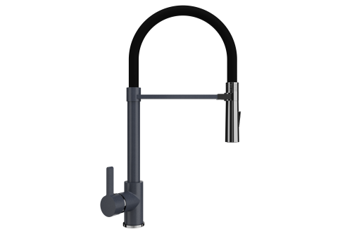 ULGRAN U-024 - стильный  современный кухонный смеситель с высоким  гибким изливом черного цвета. Материал корпуса выполнен из высококачественной латуни, а окрашивание  под "искусственный камень", в цвет мойки ULGRAN  выполняется на собственном производстве, что позволяет идеально попасть в фирменный цвет моек ULGRAN. В качестве керамического картриджа используется известный бренд Wanhai диаметром 40 мм с высокой пропускной способностью в 500 тысяч циклов "открывания-закрывания".  На подвижные части картриджа  Wanhai  нанесена специальная невымываемая силиконовая смазка, а керамические пластины изготовлены из 96% оксида алюминия, что, в сочетании с высоким качеством шлифовки обеспечивает долговечность, надежность, плавность хода рукоятки.  Смеситель оборудован съемным пластиковым аэратором для экономии воды  и гибким изливом на 360 градусов. В комплектацию входят: керамический картридж  Wanhai, гибкая подводка 450 мм, комплект крепежных элементов, технический паспорт и гарантийный талон.   Заводская гарантия составляет 3 года на материал корпуса,  1 год на комплектующие к смесителю и 1 год на материал покрытия.