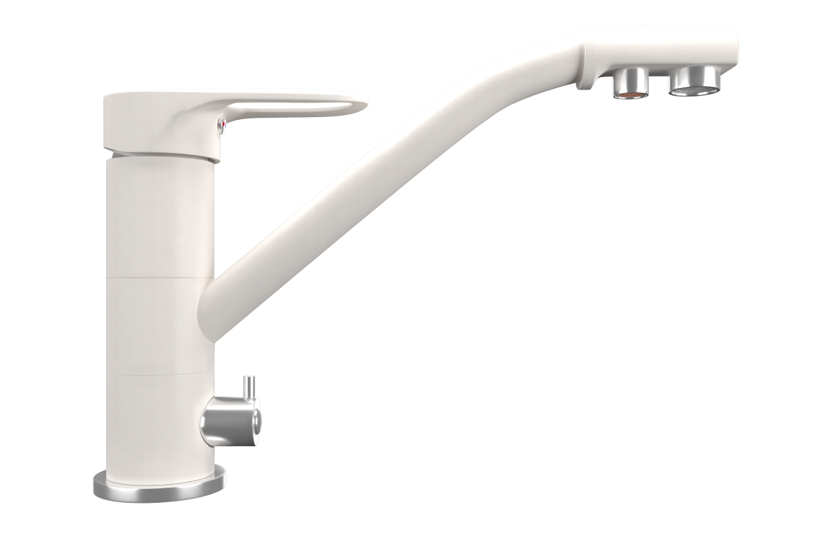 ULGRAN Quartz UQ-010 - высокоэргономичный кухонный смеситель с дополнительным краном для подключения фильтрованной воды, оснащенный кран-буксой с керамическими пластинами. Реализован тройной подвод воды через один излив: холодная, горячая и фильтрованная. Переход с одного подвода на другой производится поворотом рычага. Набор для соединения с фильтром входит в комплект . Система фильтрации приобретается дополнительно и монтируется под мойку, специальный индикатор сообщает о необходимости замены картриджа. Материал корпуса выполнен из высококачественной латуни, а окрашивание под "искусственный камень" в цвет мойки ULGRAN Quartz выполняется на собственном производстве, что позволяет идеально попасть в фирменный цвет ULGRAN Quart. В качестве керамического картриджа используется известный бренд Wanhai диаметром 35 мм с высокой пропускной способностью в 500 тысяч циклов "открывания-закрывания".  На подвижные части картриджа  Wanhai  нанесена специальная невымываемая силиконовая смазка, а керамические пластины изготовлены из 96% оксида алюминия, что, в сочетании с высоким качеством шлифовки обеспечивает долговечность, надежность, плавность хода рукоятки.  Смеситель оборудован съемным пластиковым аэратором для экономии воды  и поворотным изливом на 360 градусов. В комплектацию входя:  керамический картридж  Wanhai, гибкая подводка, комплект крепежных элементов,  кран-букса с керамическими пластинами для дополнительного излива для фильтрованной воды, набор для подсоединения фильтра питьевой воды (гибкая подводка + переходник-цанга), технический паспорт и гарантийный талон. Заводская гарантия составляет 3 года на материал корпуса, 1 год на комплектующие к смесителю и 1 год на материал покрытия.