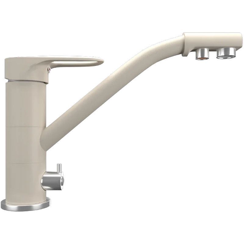 ULGRAN Quartz UQ-010 - высокоэргономичный кухонный смеситель с дополнительным краном для подключения фильтрованной воды, оснащенный кран-буксой с керамическими пластинами. Реализован тройной подвод воды через один излив: холодная, горячая и фильтрованная. Переход с одного подвода на другой производится поворотом рычага. Набор для соединения с фильтром входит в комплект . Система фильтрации приобретается дополнительно и монтируется под мойку, специальный индикатор сообщает о необходимости замены картриджа. Материал корпуса выполнен из высококачественной латуни, а окрашивание под "искусственный камень" в цвет мойки ULGRAN Quartz выполняется на собственном производстве, что позволяет идеально попасть в фирменный цвет ULGRAN Quart. В качестве керамического картриджа используется известный бренд Wanhai диаметром 35 мм с высокой пропускной способностью в 500 тысяч циклов "открывания-закрывания".  На подвижные части картриджа  Wanhai  нанесена специальная невымываемая силиконовая смазка, а керамические пластины изготовлены из 96% оксида алюминия, что, в сочетании с высоким качеством шлифовки обеспечивает долговечность, надежность, плавность хода рукоятки.  Смеситель оборудован съемным пластиковым аэратором для экономии воды  и поворотным изливом на 360 градусов. В комплектацию входя:  керамический картридж  Wanhai, гибкая подводка, комплект крепежных элементов,  кран-букса с керамическими пластинами для дополнительного излива для фильтрованной воды, набор для подсоединения фильтра питьевой воды (гибкая подводка + переходник-цанга), технический паспорт и гарантийный талон. Заводская гарантия составляет 3 года на материал корпуса, 1 год на комплектующие к смесителю и 1 год на материал покрытия.