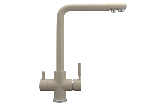 ULGRAN Quartz UQ-016 - высокоэргономичный кухонный смеситель с дополнительным краном для подключения фильтрованной воды, оснащенный кран-буксой с керамическими пластинами. Реализован тройной подвод воды через один излив: холодная, горячая и фильтрованная. Переход с одного подвода на другой производится поворотом рычага. Набор для соединения с фильтром входит в комплект . Система фильтрации приобретается дополнительно и монтируется под мойку, специальный индикатор сообщает о необходимости замены картриджа. Материал корпуса выполнен из высококачественной латуни, а окрашивание под "искусственный камень" в цвет мойки ULGRAN Quart выполняется на собственном производстве, что позволяет идеально попасть в фирменный цвет ULGRAN Quart. В качестве керамического картриджа используется известный бренд Wanhai диаметром 35 мм с высокой пропускной способностью в 500 тысяч циклов "открывания-закрывания".  На подвижные части картриджа  Wanhai  нанесена специальная невымываемая силиконовая смазка, а керамические пластины изготовлены из 96% оксида алюминия, что, в сочетании с высоким качеством шлифовки обеспечивает долговечность, надежность, плавность хода рукоятки.  Смеситель оборудован съемным пластиковым аэратором для экономии воды  и поворотным изливом на 360 градусов. В комплектацию входят:  керамический картридж  Wanhai, гибкая подводка, комплект крепежных элементов,  кран-букса с керамическими пластинами для дополнительного излива для фильтрованной воды, набор для подсоединения фильтра питьевой воды (гибкая подводка + переходник-цанга), технический паспорт и гарантийный талон. Заводская гарантия составляет 3 года на материал корпуса, 1 год на комплектующие к смесителю и 1 год на материал покрытия.