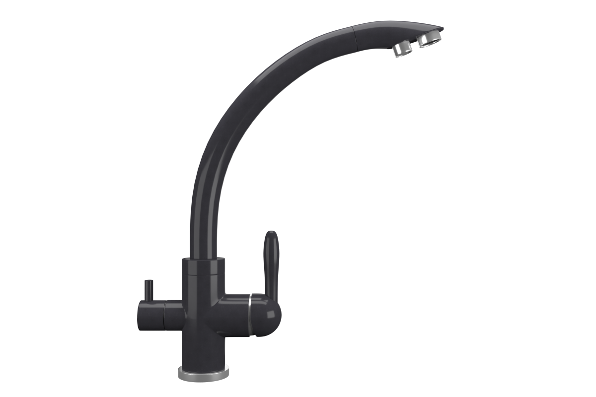 ULGRAN Quartz UQ-017 - современный кухонный смеситель с дополнительным краном для подключения фильтрованной воды, оснащенный кран-буксой с керамическими пластинами. Реализован тройной подвод воды через один излив: холодная, горячая и фильтрованная. Переход с одного подвода на другой производится поворотом рычага. Набор для соединения с фильтром входит в комплект . Система фильтрации приобретается дополнительно и монтируется под мойку, специальный индикатор сообщает о необходимости замены картриджа. Материал корпуса выполнен из высококачественной латуни, а окрашивание под "искусственный камень" в цвет мойки ULGRAN Quartz выполняется на собственном производстве, что позволяет идеально попасть в фирменный цветULGRAN Quartz. В качестве керамического картриджа используется известный бренд Wanhai диаметром 35 мм с высокой пропускной способностью в 500 тысяч циклов "открывания-закрывания".  На подвижные части картриджа  Wanhai  нанесена специальная невымываемая силиконовая смазка, а керамические пластины изготовлены из 96% оксида алюминия, что, в сочетании с высоким качеством шлифовки обеспечивает долговечность, надежность, плавность хода рукоятки.  Смеситель оборудован съемным пластиковым аэратором для экономии воды  и поворотным изливом на 360 градусов. В комплектацию входя:  керамический картридж  Wanhai, гибкая подводка, комплект крепежных элементов,  кран-букса с керамическими пластинами для дополнительного излива для фильтрованной воды, набор для подсоединения фильтра питьевой воды (гибкая подводка + переходник-цанга), технический паспорт и гарантийный талон. Заводская гарантия составляет 3 года на материал корпуса, 1 год на комплектующие к смесителю и 1 год на материал покрытия.
