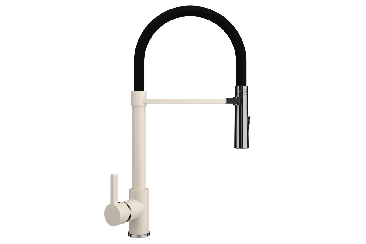 ULGRAN Quartz UQ-024  - стильный  современный кухонный смеситель с высоким  гибким изливом черного цвета. Материал корпуса выполнен из высококачественной латуни, а окрашивание  под "искусственный камень", в цвет мойки ULGRAN  выполняется на собственном производстве, что позволяет идеально попасть в фирменный цвет моек ULGRAN. В качестве керамического картриджа используется известный бренд Wanhai диаметром 40 мм с высокой пропускной способностью в 500 тысяч циклов "открывания-закрывания".  На подвижные части картриджа  Wanhai  нанесена специальная невымываемая силиконовая смазка, а керамические пластины изготовлены из 96% оксида алюминия, что, в сочетании с высоким качеством шлифовки обеспечивает долговечность, надежность, плавность хода рукоятки.  Смеситель оборудован съемным пластиковым аэратором для экономии воды  и гибким изливом на 360 градусов. В комплектацию входят: керамический картридж  Wanhai, гибкая подводка 450 мм, комплект крепежных элементов, технический паспорт и гарантийный талон.   Заводская гарантия составляет 3 года на материал корпуса,  1 год на комплектующие к смесителю и 1 год на материал покрытия.
