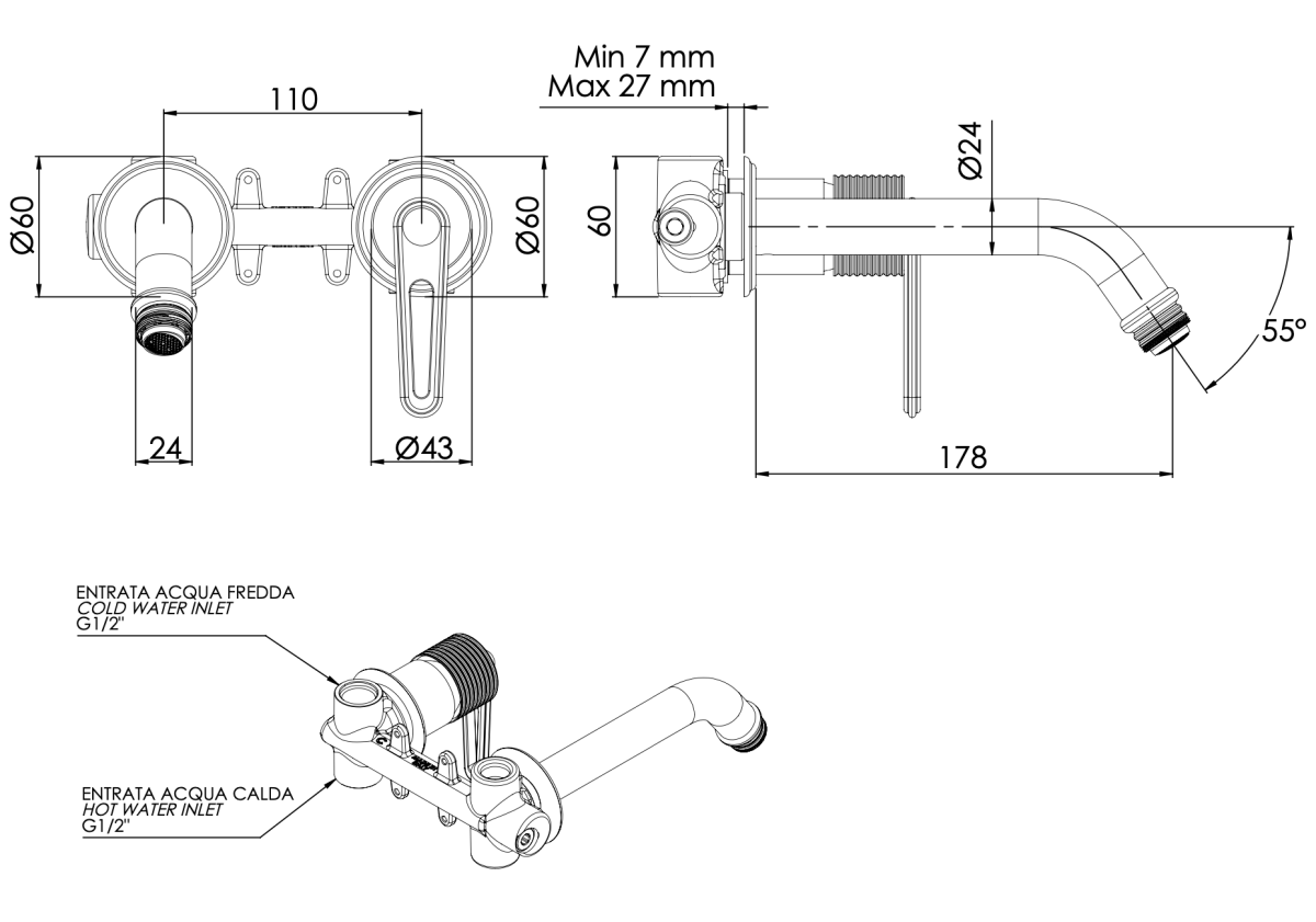 —Смеситель для раковины Daniel Brooklyn BY632PCR встраиваемый в стену хром
