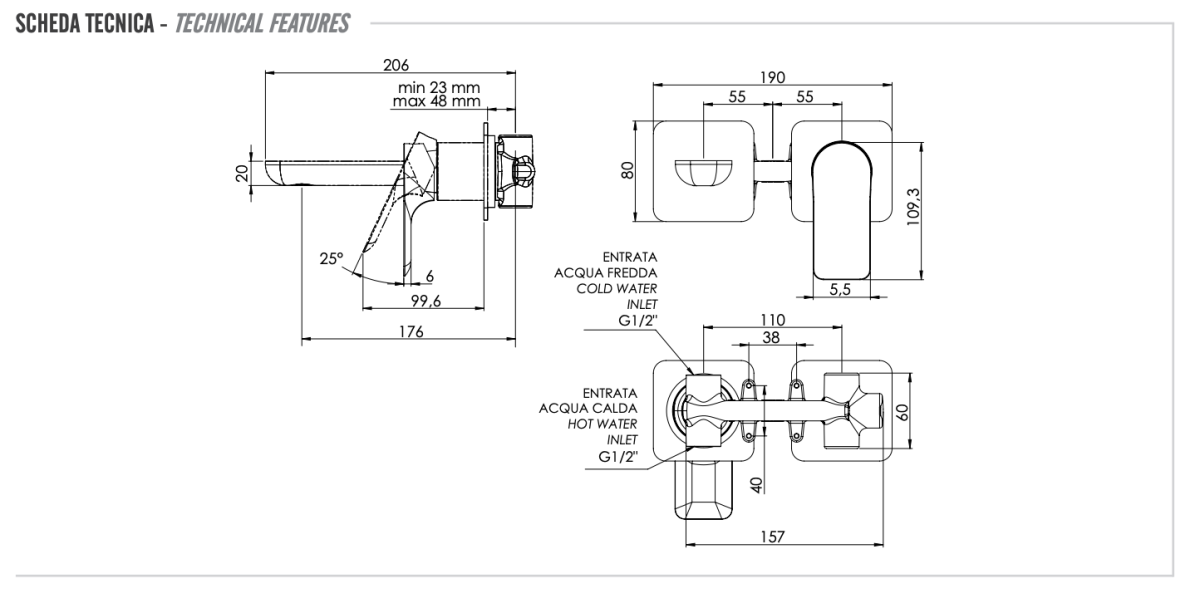—Смеситель для раковины Remer Infinity I15PXV встраиваемый в стену нержавеющая сталь