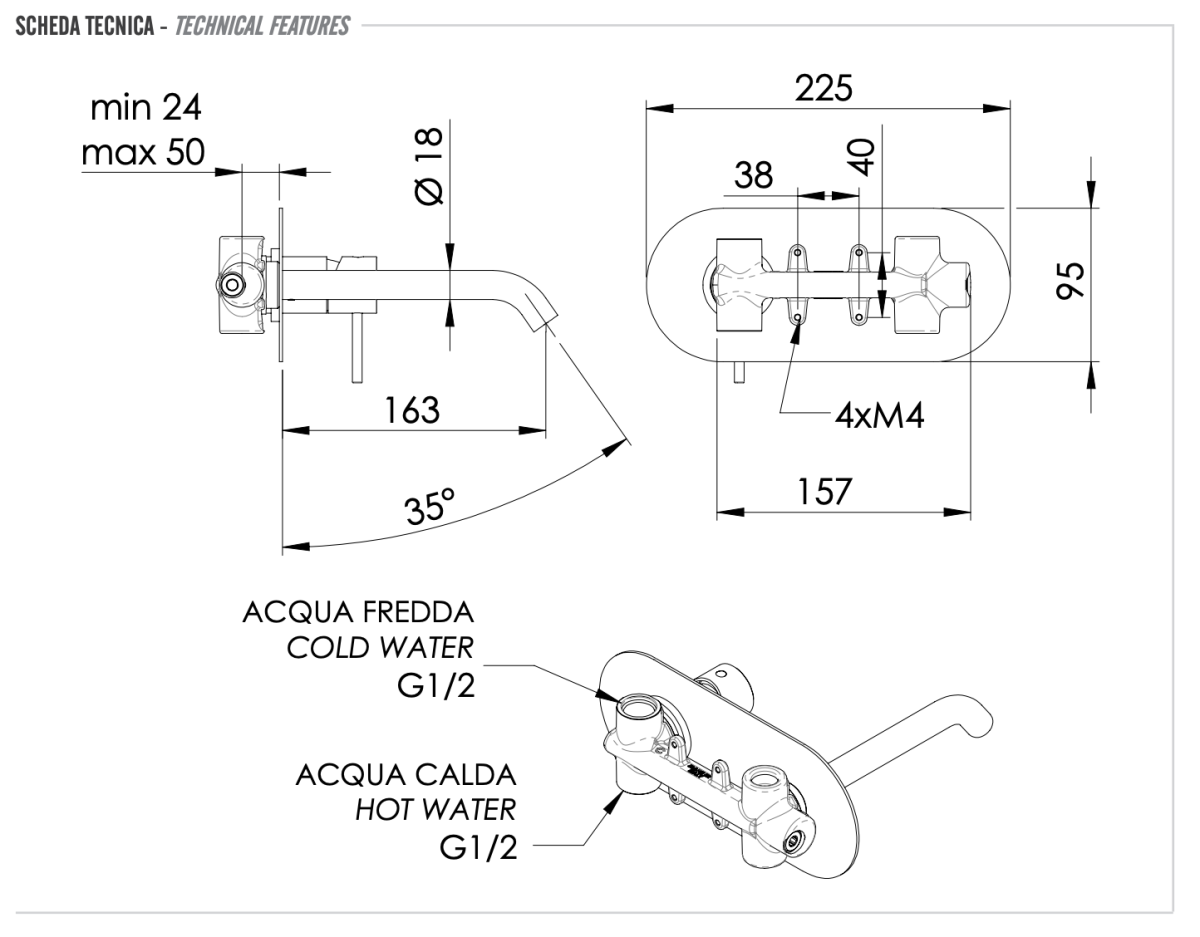 —Смеситель для раковины Remer X Style X15BG встраиваемый в стену золото