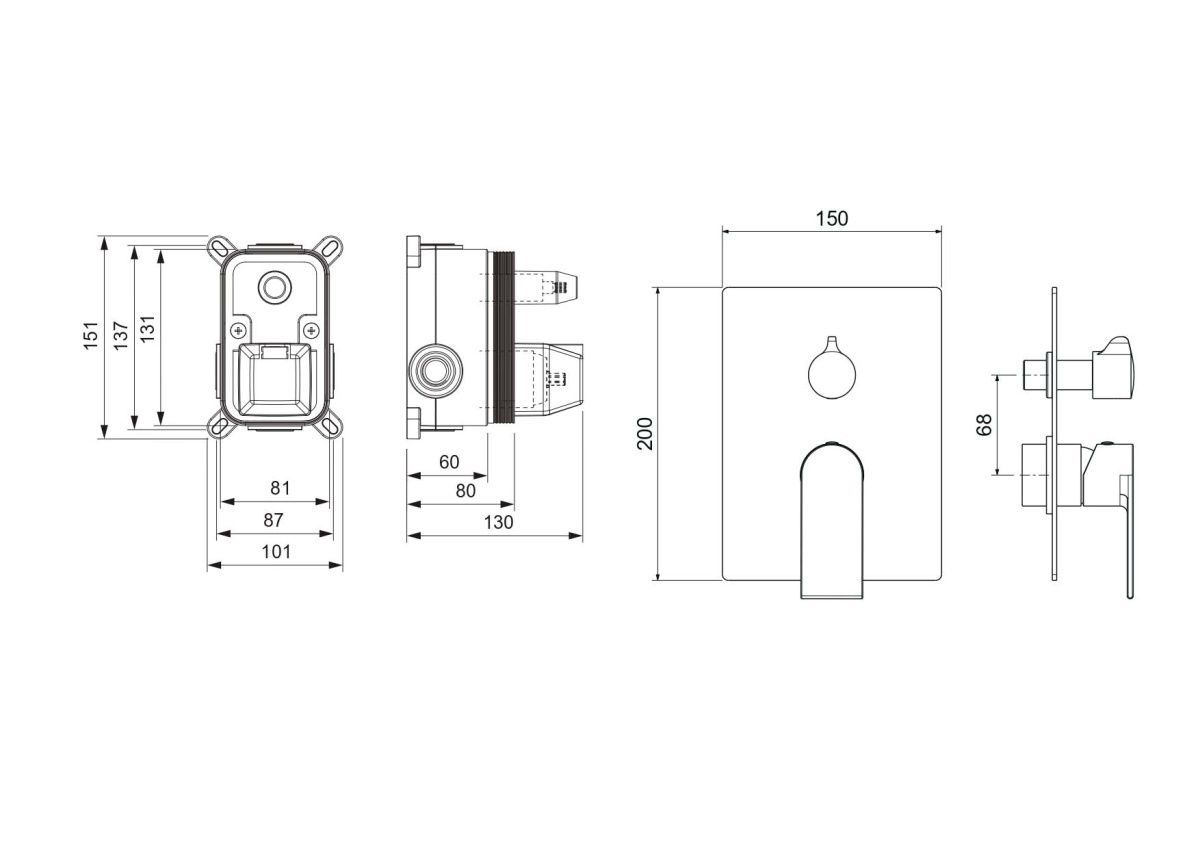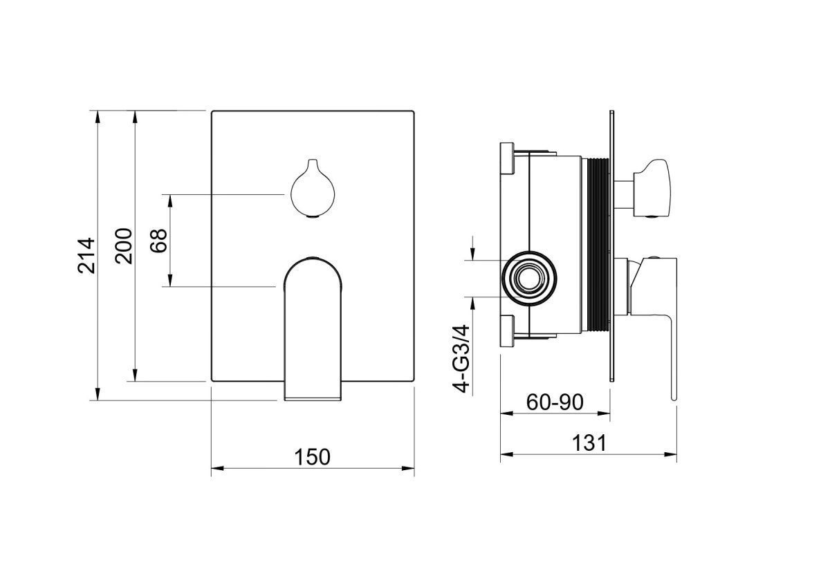 —Смеситель для ванны Aquatek ЛИРА AQ1446MB встраиваемый в стену черный