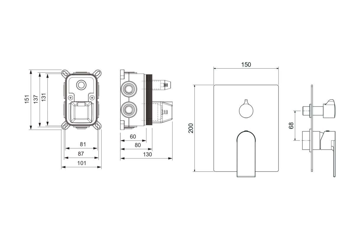 —Смеситель для ванны Aquatek ЛИРА AQ1447MB встраиваемый в стену черный
