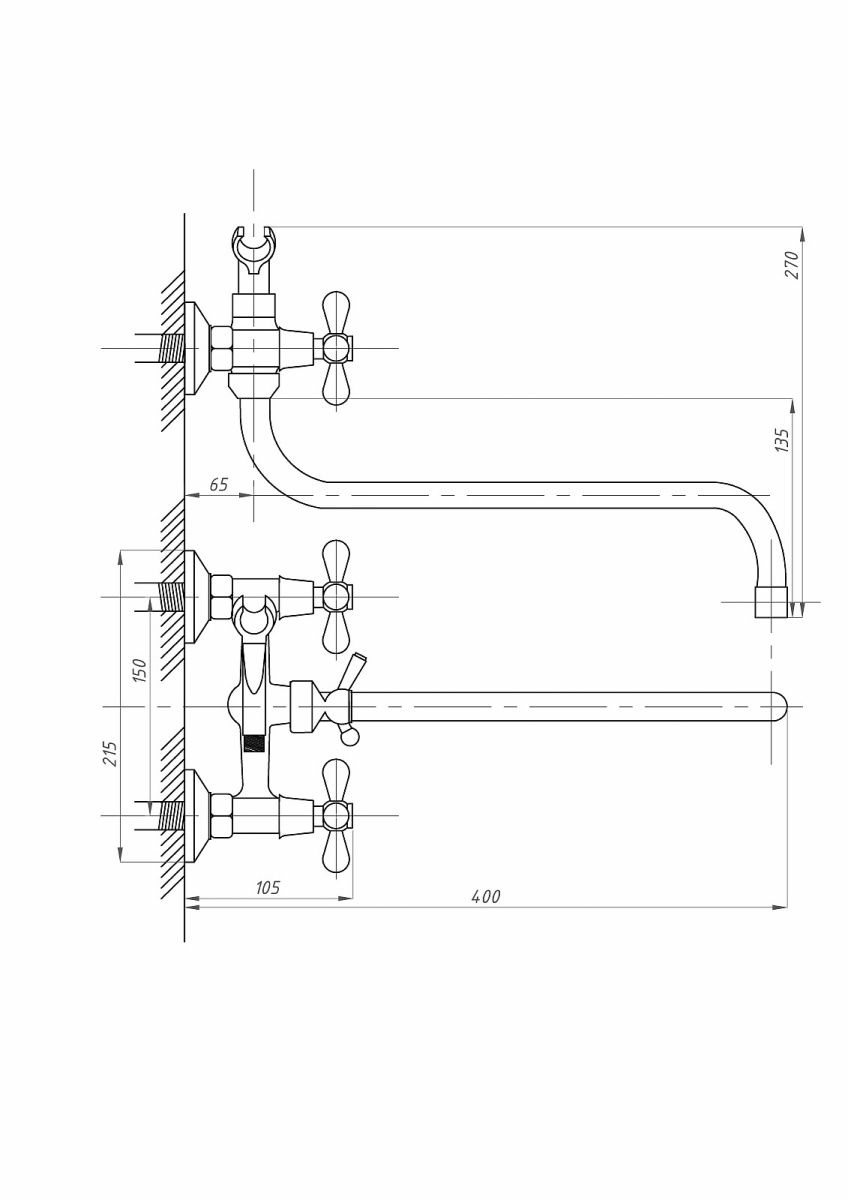 —Смеситель для ванны и душа FAUZT FZs-317-10 настенный хром