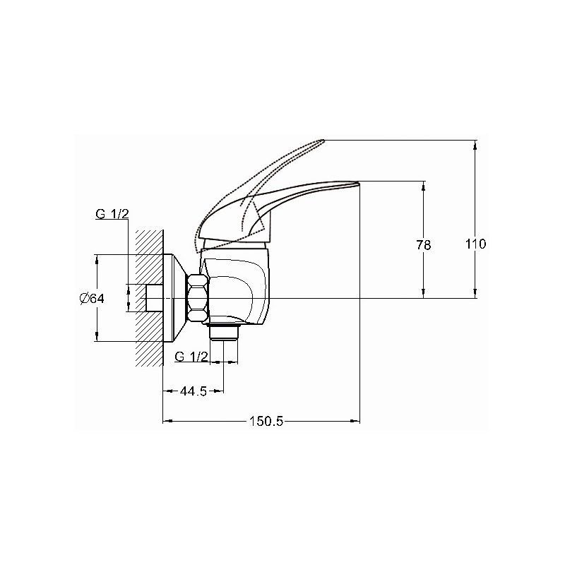 —Смеситель для ванны и душа G.Lauf KLO KLO5-A048 настенный хром
