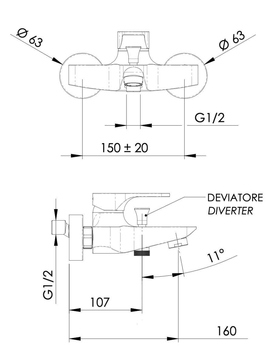 —Смеситель для ванны Mariani Surf B00212SF настенный хром