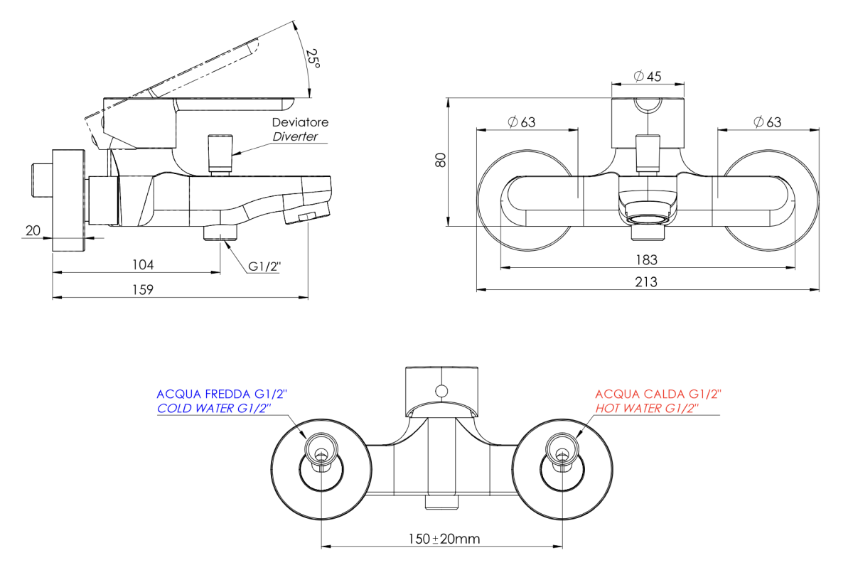 —Смеситель для ванны Mariani Winter B14212WN настенный черный