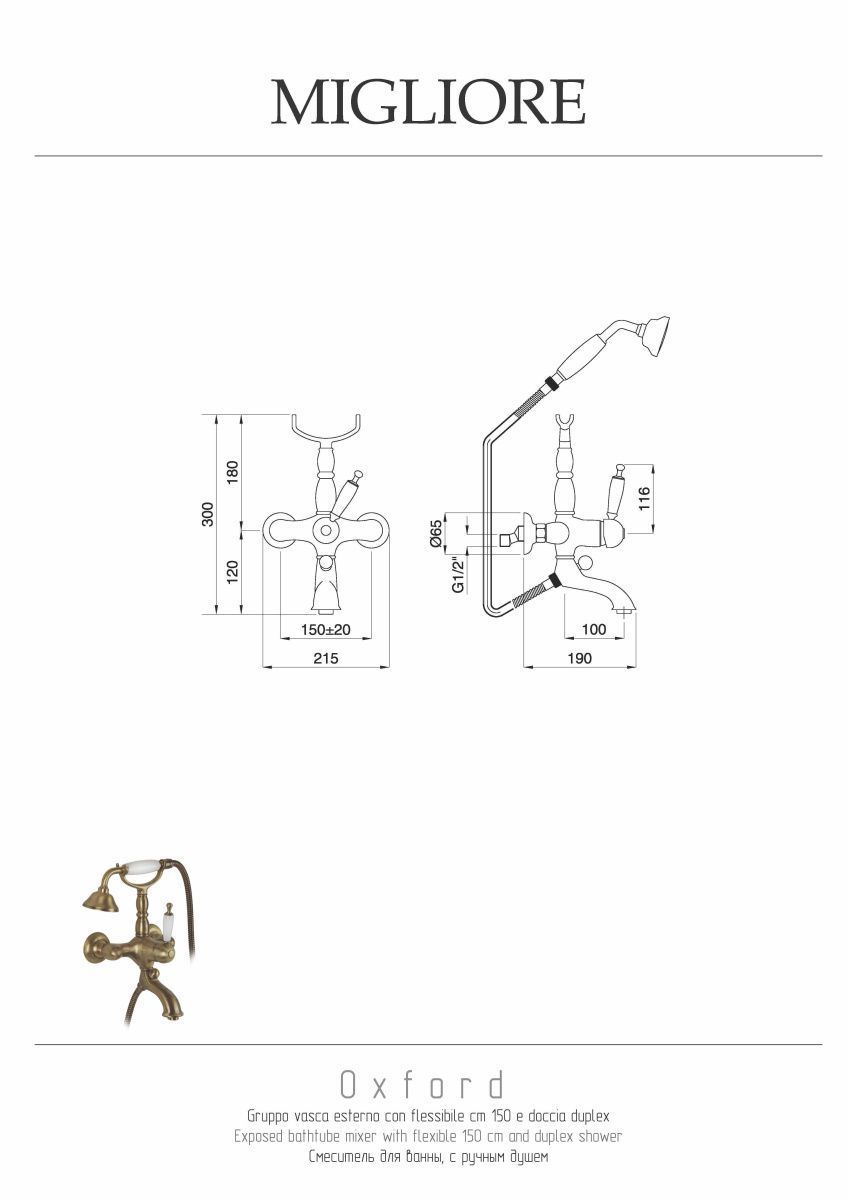 —Смеситель для ванны Migliore OXFORD 19124 настенный хром
