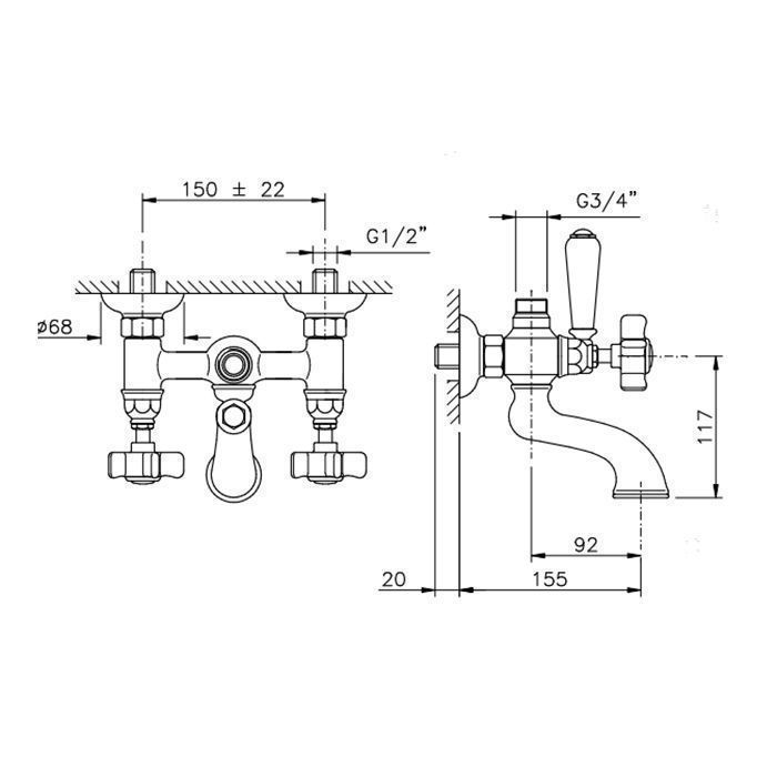 —Смеситель для ванны Nicolazzi Dames Anglaises 1400BZ18 настенный бронза