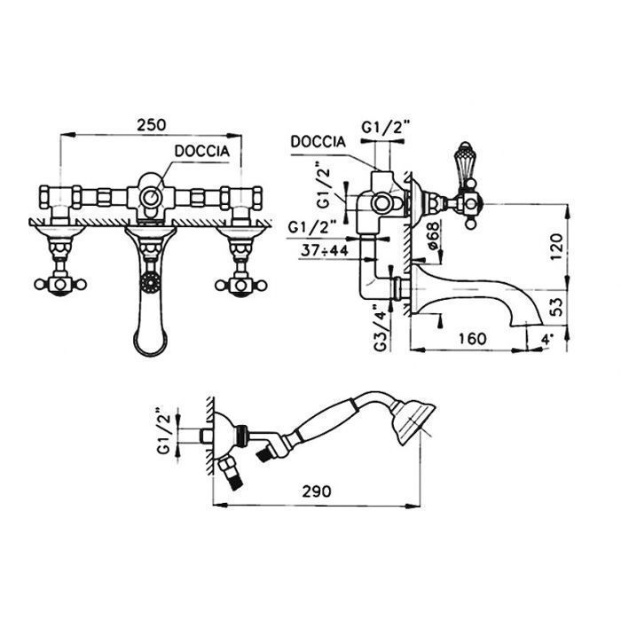 —Смеситель для ванны Nicolazzi Petit Mont Blanc 1400BZ78 встраиваемый в стену бронза