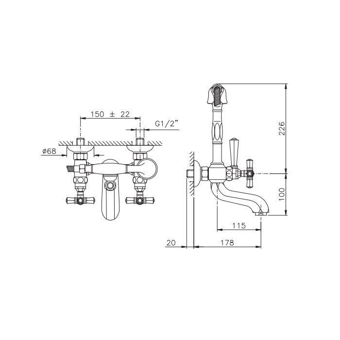 —Смеситель для ванны Nicolazzi Teide Four 1901CR45 настенный хром