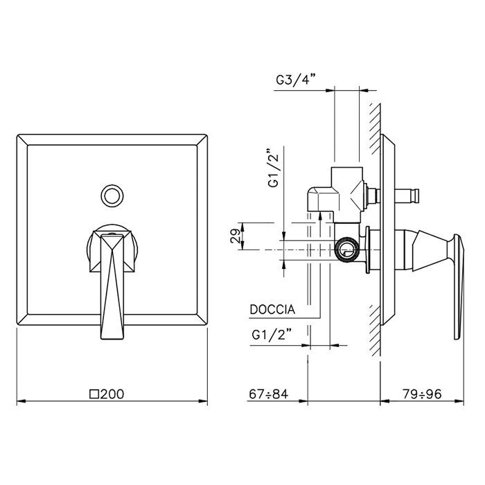 —Смеситель для ванны Nicolazzi Vincent 3096EXTCR35 встраиваемый в стену хром (внешняя часть)
