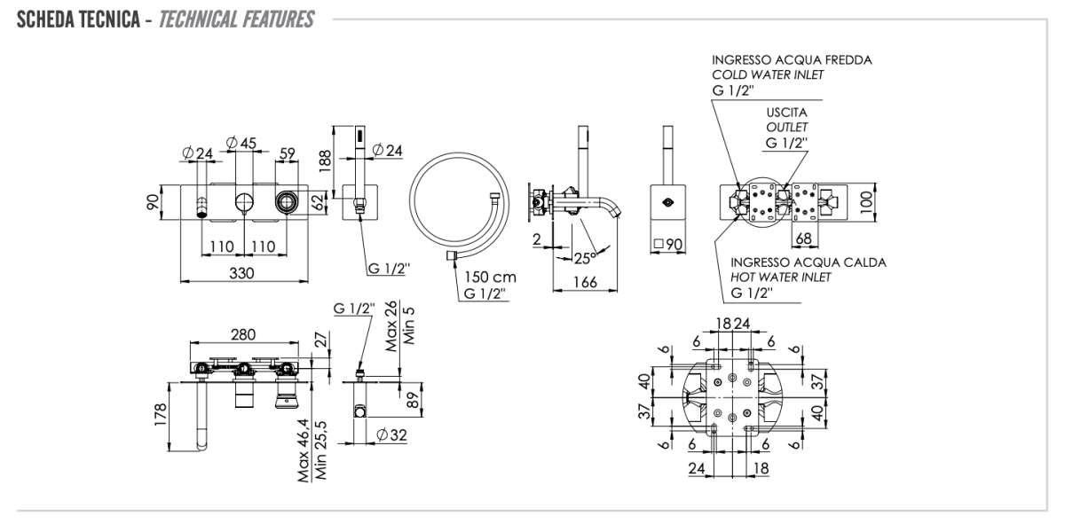 —Смеситель для ванны Remer Element ET53D2 встраиваемый в стену хром