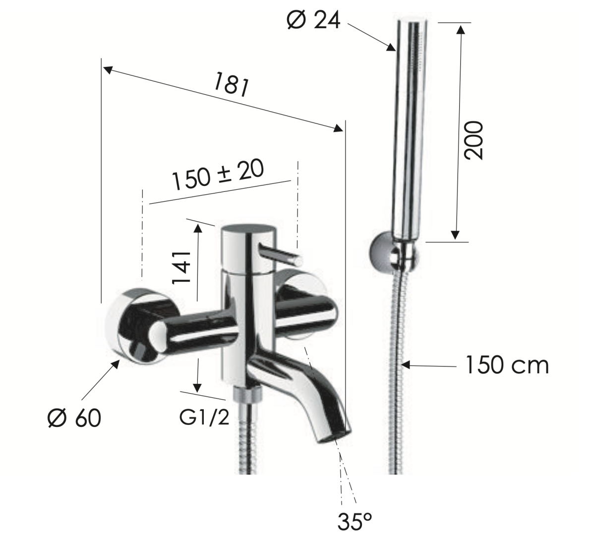 —Смеситель для ванны Remer X Style X02RP настенный медь