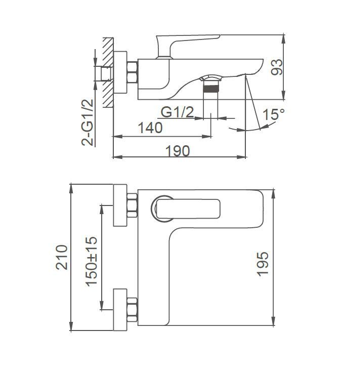 —Смеситель для ванны Wonzon & Woghand Shark WW-483101-CR настенный хром