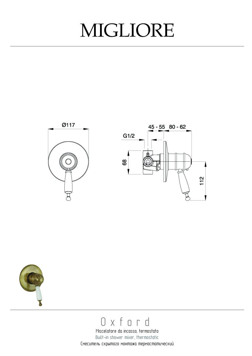 —Смеситель для душа Migliore OXFORD 19101 встраиваемый в стену бронза с термостатом
