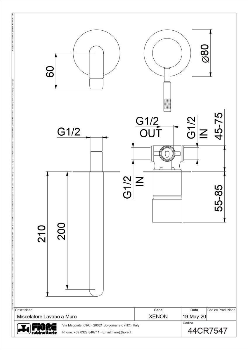 —Смеситель для раковины Fiore Xenon 44CR7547 встраиваемый в стену хром