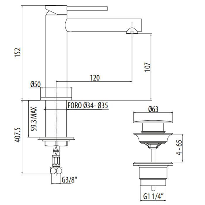 Высота излива, см