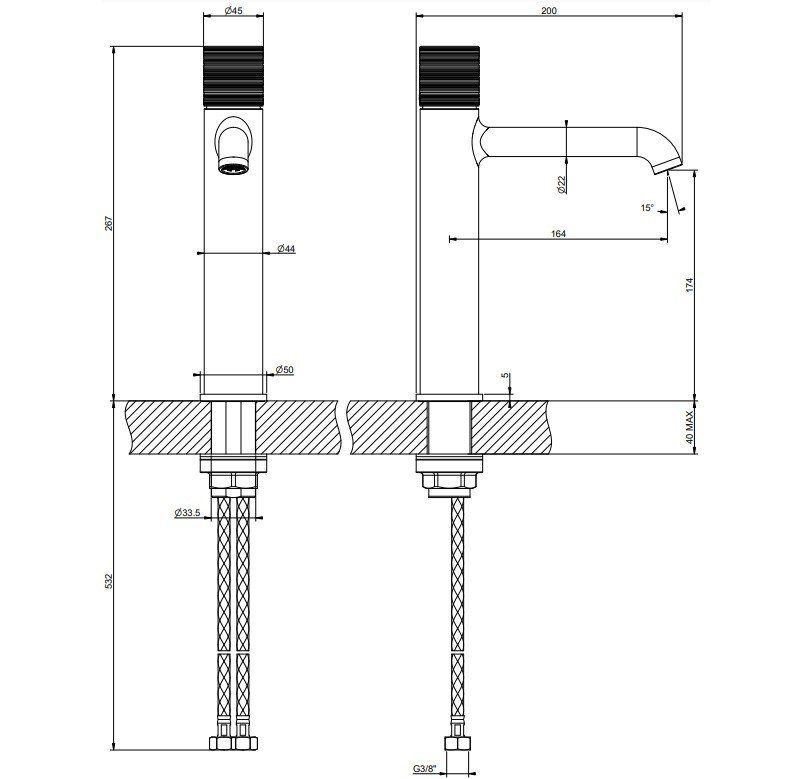 —Смеситель Gessi Habito Trame 70306/727 на раковину золото